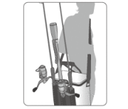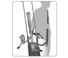 3カ所のロッドスタンドを装備。左右の2ヶは、31φまでを収納でき、8ft前後のライトタックルゲームロッドやエギングロッドを立てた状態で収納できます。センタースタンドは45φまで対応できるので小継ネットや小継ギャフも立てた状態で収納できます。ロッドを地面置きしないのでロッドやリールをキズ付けずに、タックルチェンジが素早く行えます。