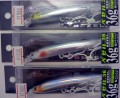 センターバランスセッティングとなります。着水後、ヒラヒラ水平フォールで強烈にアピール。もちろん、ただ引きでも良く泳ぎ、初心者~エキスパートアングラーまで満足のいくアクションを実現しました。ワンチャンスのナブラ撃ちで、確実に釣果を出すハイパフォーマンスモデル。シリーズ一番のヘビーウエイトモデル 100kgオーバーまでも視野に入れた超剛性シンキングペンシル。
