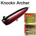 【ザウルス】バルサ50 ノックンアーチャー ノックン・シリーズのニューフェイスポッパー! 大きくオフセットしたカップが多彩な水しぶきを上げ、バスを惑わす。 …アーチャーフィッシュ(てっぽう魚)のように、水しぶきを細く前方に吹き出し、サーフェイスを飛び出し逃げ惑うベイトフィッシュを演出します。 ファットになったボディが持つ浮力を生かし、180度ターンをも楽々とこなします。 サイズ:オリジナル ウエイト:18g