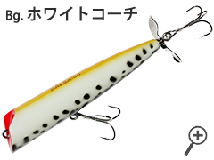 この特徴的なラプターフェイスは、名前の通りに水面を“ノック”するようなダイブをして、その時にフラットカットと曲面カットとの隙間に大小交えた魅惑的な“Bubble”を発生させる。 そしてスピナーテイルによって自身で発生させた泡を切り裂き、泡を絡んだダイブをした後に、まるで元に居た場所に戻ってしまうかのようなキックバックをも演出してしまう、小粋なノックン スピン。
