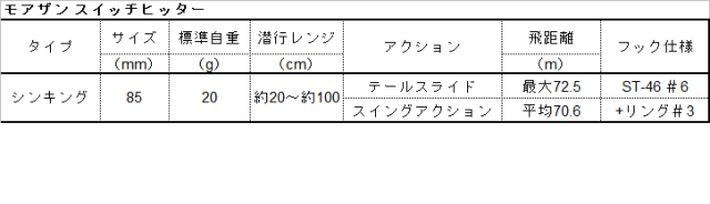 浮き上がりも早いのでサーフや干潟等のシャローエリアを簡単に攻略できるうえ、ジグ並みに飛距離が出るので、ミノーでは届かない遠くのボイルも射程距離内。
