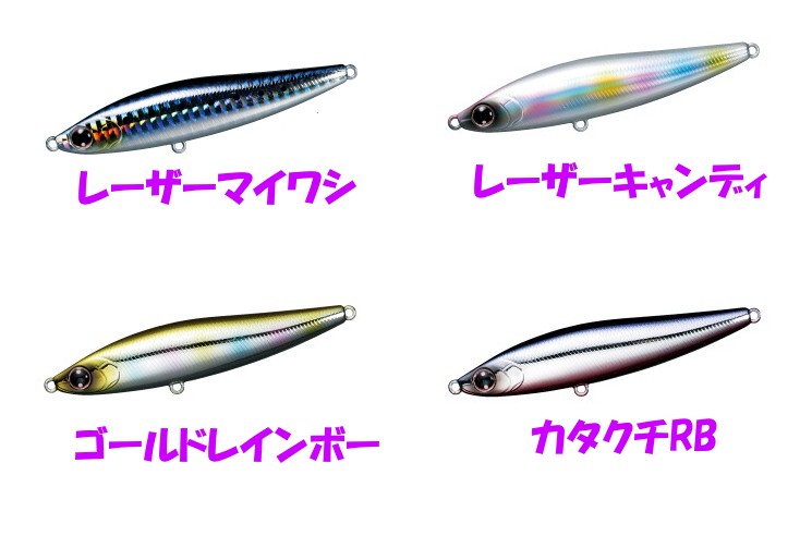 「シャローエリアや魚が水面を意識している時、ベイトが小さくポイントが遠い時に、デイ&ナイト、エリアを選ばず、誰でも飛距離が出て扱いやすい、立ち上がりが早く着水した瞬間からバイトチャンスがある」をコンセプトに開発された高比重小型シンキングペンシル。